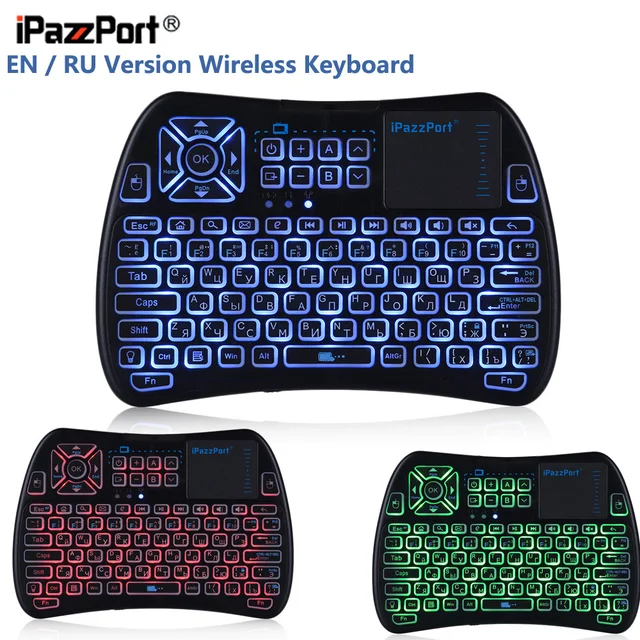 Best Price Latest IPazzPort KP-810-61 Mini Wireless Keyboard RF 2.4G WiFi With 3 Color Backlight Touch Pad Remote Control For TV Box RU/EN For Sale
